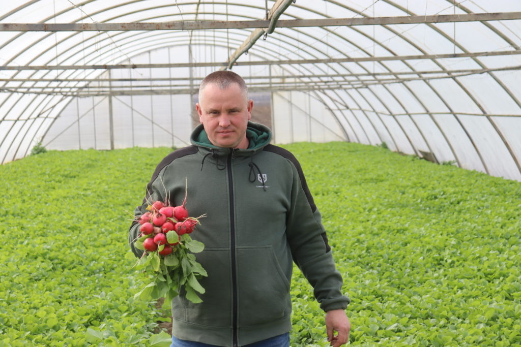 – Мы выращиваем сорт редиса «селеста». Редиска крупная, сладкая, сочная, с хорошей урожайностью. Обычно начинаем её убирать 15 февраля. Но в этом году зима затянулась, были морозы. Первый урожай собрали 5 марта, – рассказывает Евгений.