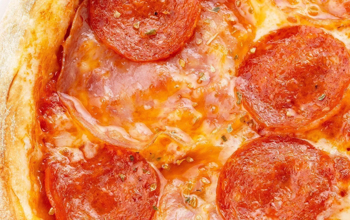 Начнем с того, что мы готовим ее на основе нашего фирменного томатного соуса, который создается вручную из свежих ингредиентов. Затем мы добавляем щедрые порции пепперони и салями фелино, которые придают пицце невероятный вкус.