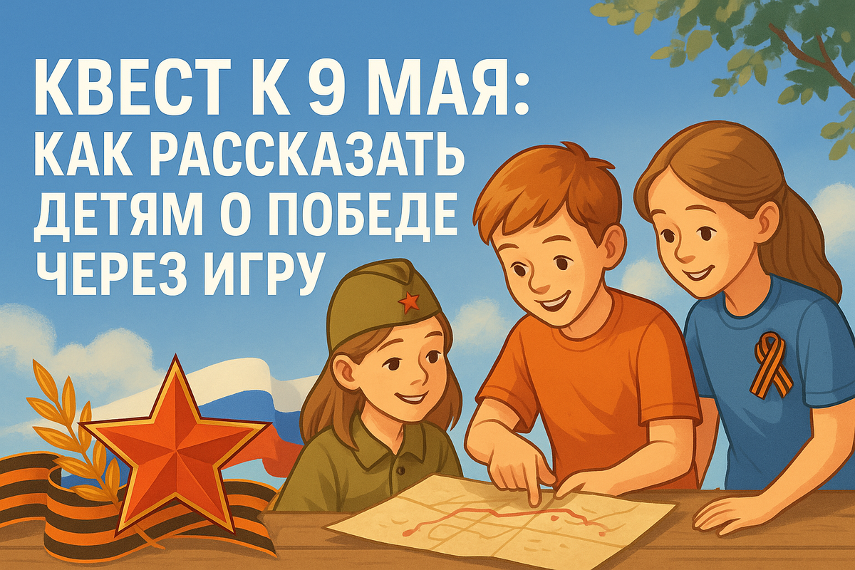 Если вы хотите провести квест ко Дню Победы самостоятельно — вот готовый сценарий, который подойдет для детей 10–12 лет. Его можно адаптировать под школьный класс, спортзал, двор, лагерь или даже домашний праздник.