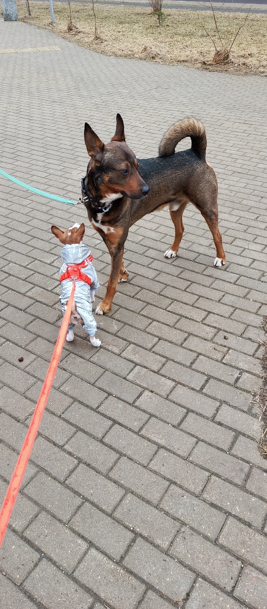 Лорка начала гулять. Естественно пошли встречи и знакомства с соседями. Страшно? Да. Мне страшно, а Лорке нет.))) Её больше интересуют собаки побольше. Совет от кинолога, - не натягивать поводок, что бы собака не вставала на задние лапы провоцируя агрессивную позу при встрече с сородичами... С мелкими просто обнюх и потеря интереса, а вот более крупные прям притягивают... И частенько прям очень сильно хочется натянуть поводок))), вроде бульдог французский, но прям же вот такой брутальный хряк)))) Лохматые декорации это ваще не к нам...) Ну в целом очень понятно к чему и за чем собаку нужно прививать...))) Сильнее собак нас тянет к птицам.., эту ворону мы гипнотизировали минут 15... А голуби, это просто кошмарики... Вестибулярный аппарат отказывается работать...))) По уткам, думаю, что летом начнёт добывать))) ...... Вообще у них свой мир, мелочь не понятная может рычать, ругаться, скалиться, а огромные "медведи" прям добродушные..., хотя какой другой мир.., всё, как у людей...)))