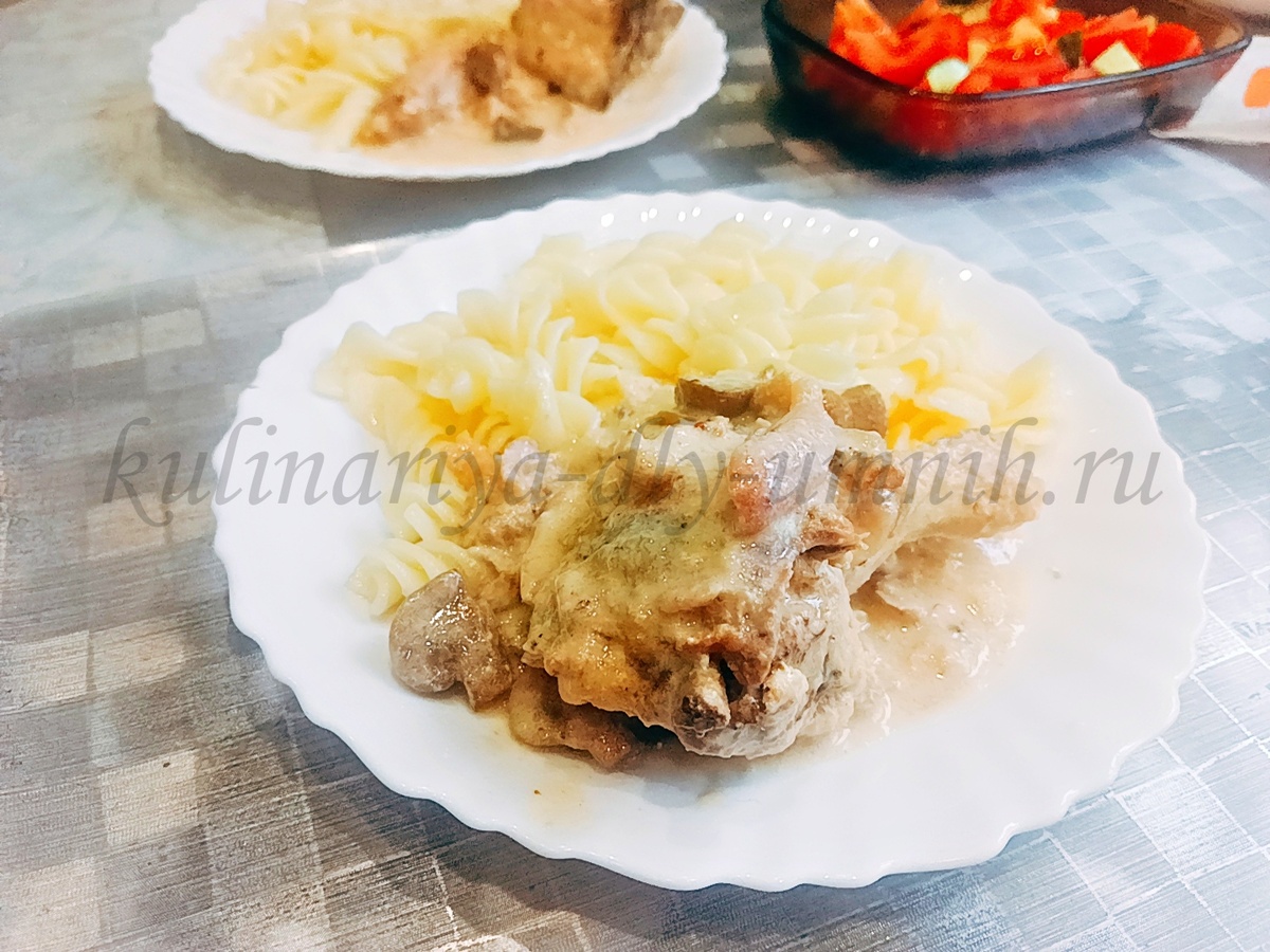 Как насчёт курочки на ужин, м? Сочная и нежная курица с грибами, тушёная в сливках, гурманов может и не удивит, зато порадует любителей простых, добротных, вкусных блюд! Нам потребуется Курицу разделываем на порционные кусочки. Обжариваем в раскалённой сковороде на масле до полуготовности. Перекладываем в сотейник (я в мультиварку). В сковороду отправляем порезанный кубиками лук. Обжариваем минуту, помешивая. Добавляем к луку нарезанные пластинками грибы. Обжариваем лук с грибами еще пару минут. Отправляем обжаренные с луком грибы к курице в сотейник. Заливаем 100 мл воды. Солим, перчим. Доводим до кипения, огонь убавляем. Тушим курицу с грибами полчаса. Сливки смешиваем с мукой. Добавляем к курице за пять минут до окончания тушения вместе с мелко нарубленным чесноком. Даем нашей курице в сливочно-грибном соусе настояться. Подаем с гарниром. Как вам? У вас что на ужин планируется? Делитесь идеями!
