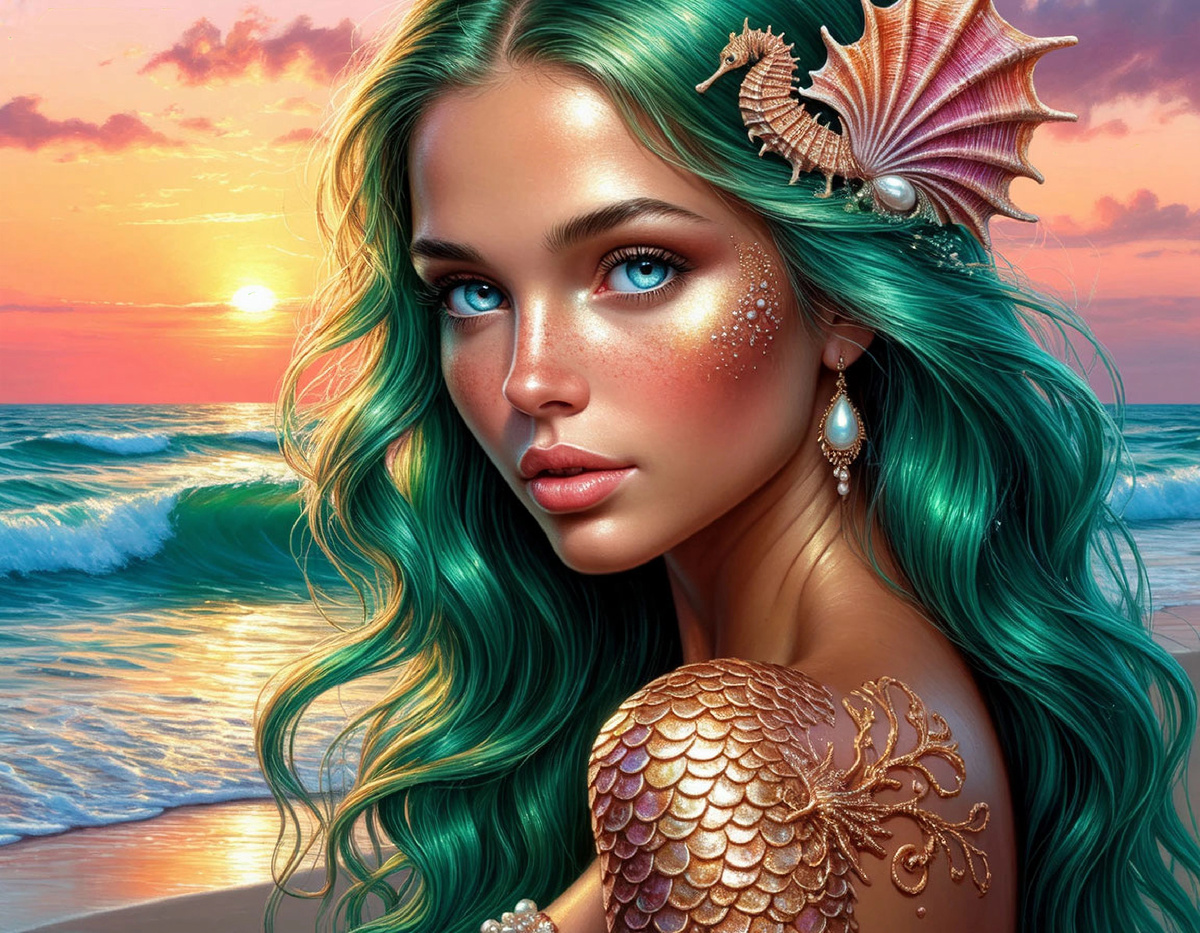 Перед ней возникла девушка неземной красоты, с длинными, цвета морской волны волосами, и вместо ног у неё был переливающийся серебром рыбий хвост.