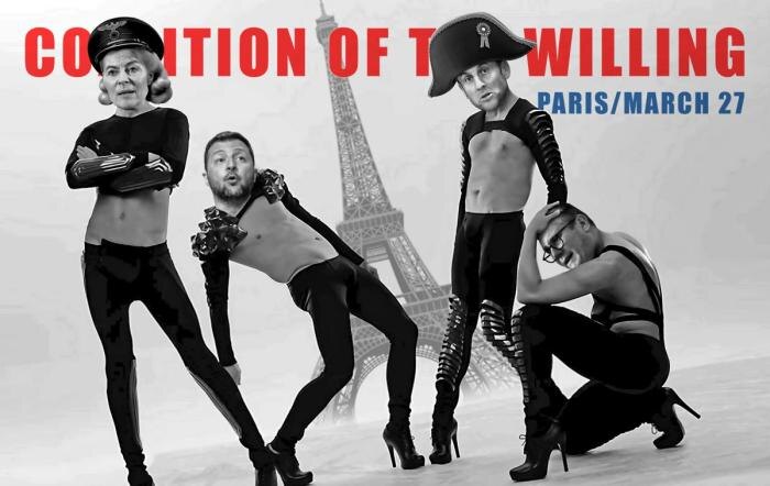 27 марта до Парижа доехали и остальные члены «коалиции похотливых». Под лозунгом «Построить прочный мир для Украины и Европы» они стали обсуждать военную и финансовую помощь киевскому режиму, а также вопрос отправки на украинскую территорию европейских "миротворцев"».