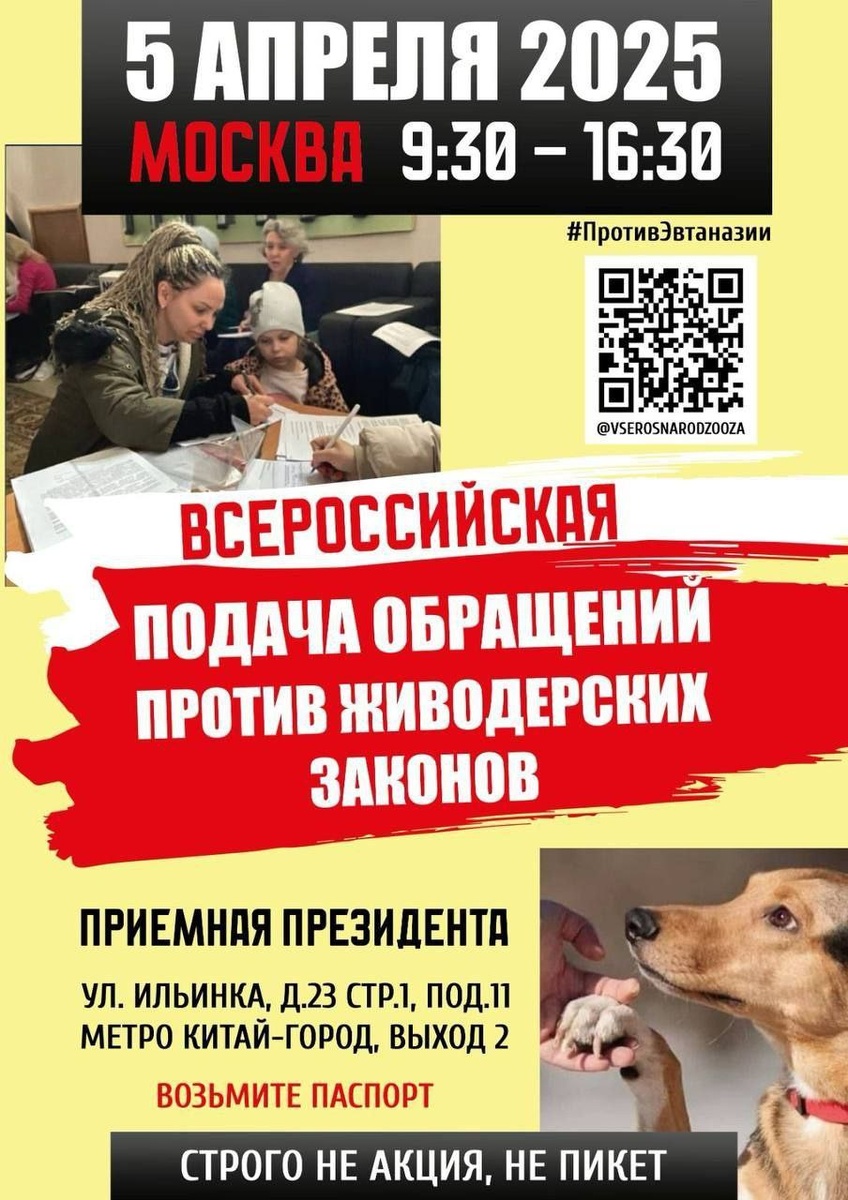 🚨🚨🚨 29 МАРТА ЖИВОЙ ПОДАЧИ ОБРАЩЕНИЙ - НЕ БУДЕТ. Администрация Президента не работает почти каждую последнюю субботу месяца! 🚨🚨🚨ФИЗИЧЕСКАЯ ПОДАЧА ОБРАЩЕНИЙ ПЕРЕНОСИТСЯ НА 5 АПРЕЛЯ! Это никак со всеми вами не связано, просто расписание АП. Не читайте живодерский контент. ❕РАСПРОСТРАНИТЕ МАКСИМАЛЬНО, чтобы люди НЕ приходили 29 МАРТА, и ОБЯЗАТЕЛЬНО ПРИХОДИЛИ 5 АПРЕЛЯ. Все что ни делается - все к лучшему! 5 апреля - точно рабочий день в АП. И к 5 апреля будет собран уже гигантский компромат на то, что учинили в Думе этой весной. Письмо будет полное и актуальное! Первое чтение живодерщины сорвано, теперь они только по кабинетикам пытаются общаться. В соответствии с Федеральным Законом 59 Вы не только имеете право, но и должны ПОДАВАТЬ ОБРАЩЕНИЯ ЛИЧНО в окошки подачи. В АП специально окошки для Вас и существуют, дорогие граждане России. https://www.consultant.ru/document/cons_doc_LAW_59999/?ysclid=m8oozilk33958484932 🚨🚨🚨5 АПРЕЛЯ нужно ОБЯЗАТЕЛЬНО доложить в Администрацию През