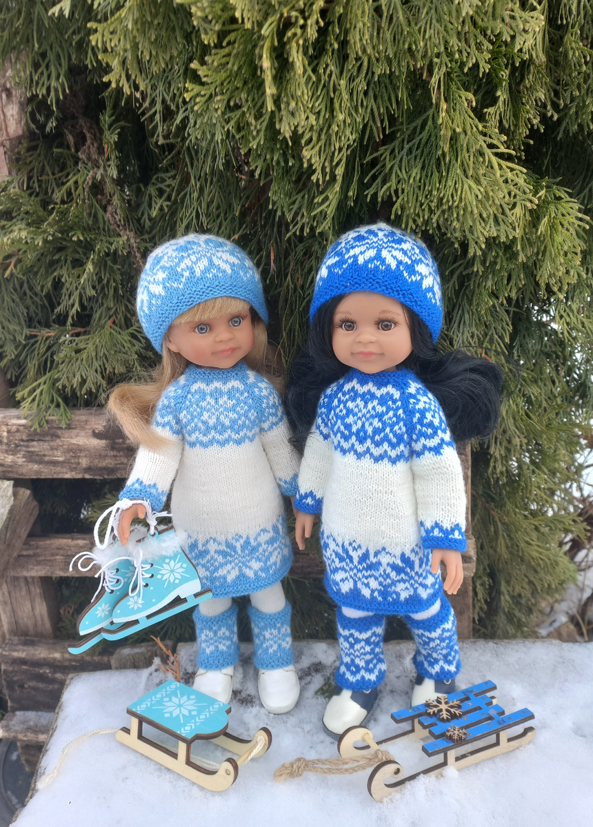 Приветствую подписчиков и гостей канала! Здесь мы вяжем для кукол и просто говорим о них. Увидела, что канал @Вязание для кукол с Knit.land участвует в челлендже, организованном каналом @Дневники кукол Тамики, и решила их поддержать. Тем более, у меня есть, что показать. Первое, что вспомнила - это наряды, связанные совсем недавно: Не совсем по теме получилось - это что-то вроде навяжи одинаковой одежды одной кукле))) А год назад я вот так одевала кукол - тоже одинаково - только цветовая гамма разная и гетры. Есть еще у меня подходящая фотография: И еще одна: Тут двух кукол рядом снова поставить не могу! Одежда есть одинаковая, а кукла одна! А это уже связано по описаниям наших замечательных авторов МК по вязанию для кукол: А дальше уже коллажи пошли, потому как некоторые наряды уже у новых хозяек, а совместных фото мы не делали: И вот еще подходит по тематике: было время когда была увлечена пошивом одежды из носков. Если заглянуть в коробочку с одеждой, то можно еще сделать нескол