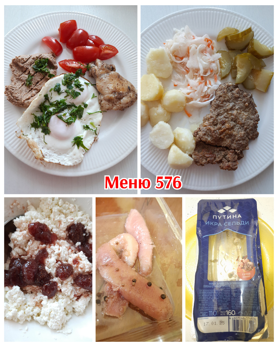 #Завтрак – творог, немного молока, чтобы было сочнее. Жирная фермерская сметана. И домашнее клубничное варенье. #Обед – отварной картофель, соленые огурцы из моего Ассорти, квашеная капуста из закупки 94. И квадратные котлеты. Взяла готовый фарш у местного фермера из телятины. В чаше блендера измельчила куриное филе, луковицу, соль, перец. Но большая часть котлет ушла котику и собаке на улице. Потому что даже у фермера фарш с какими прожилками, мелкими костями… Фарш – это просто боль. Никому нельзя верить! Даже фермерам. Ну уж кости можно убрать. А прожилки прокрутить 2 раза хотя бы… Я не против того, что в фарш идут разные части мяса, которые не товарного вида и какие-то обрезки. Это же тоже мясо. Но оно должно быть безопасным для жевания. #Ужин – яйца в виде глазуньи. Сверху зелень. Помидорки черри. Домашний паштет из куриной печени. И кусочек филе бедра, запеченного в духовке с перцем. Попробовала филе сельди впервые. Вроде бы в Ленте заказывала. Состав неплохой – икра, масло, соль