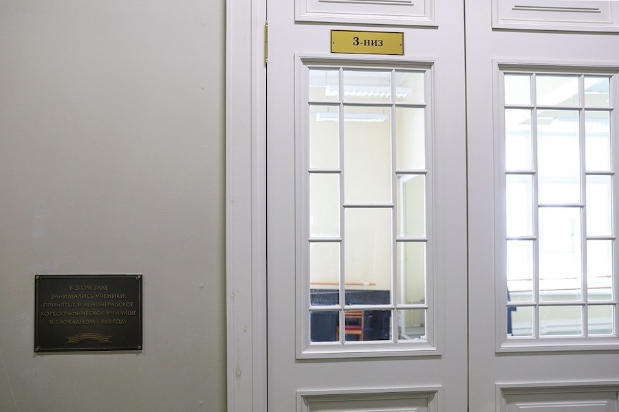 В здании Академии на улице Зодчего России располагается более двух десятков репетиционных залов – какие-то из них большие, какие-то маленькие. Нумерация залов специфическая. Тот, кто впервые попадет в Академию, скорее всего с трудом найдет нужный зал по его номеру, в котором есть не только цифра, но и слово – «низ» или «верх». Такая нумерация – давняя традиция, восходящая к царским временам, когда на разных этажах здания располагались комнаты для девочек (внизу) и мальчиков (наверху). Сейчас «ВЕРХ» – это 5-й этаж здания. Здесь расположено семь репетиционных залов. А «НИЗ» – это 3-й этаж, где находится еще 12 залов, включая исторический зал имени Мариуса Петипа высотой в три этажа. Новый репетиционный зал находится на 1-ом этаже – это 102 комната, где часто проводились выставки. Тем, кто в последние годы поступал в 1/5 класс, он хорошо знаком – здесь проходили просмотры. Шесть залов Академии – именные, они носят имена знаменитых танцовщиков. Еще один – «3-низ» – небольшой исторический