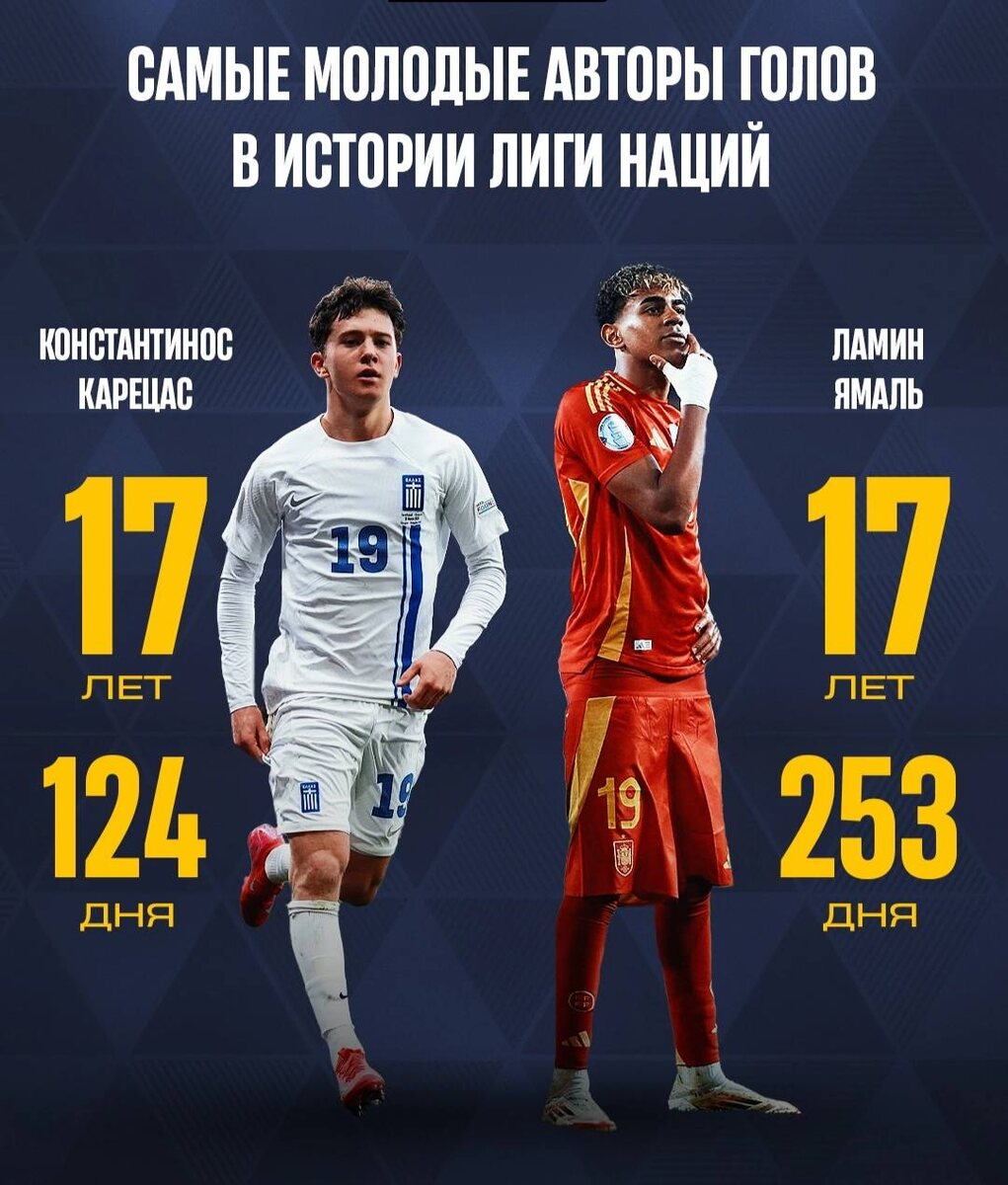 ✊Дебютант сборной Греции Константинос Карецас, огорчивший Шотландию, опередил Ламина, который забил в тот же день.