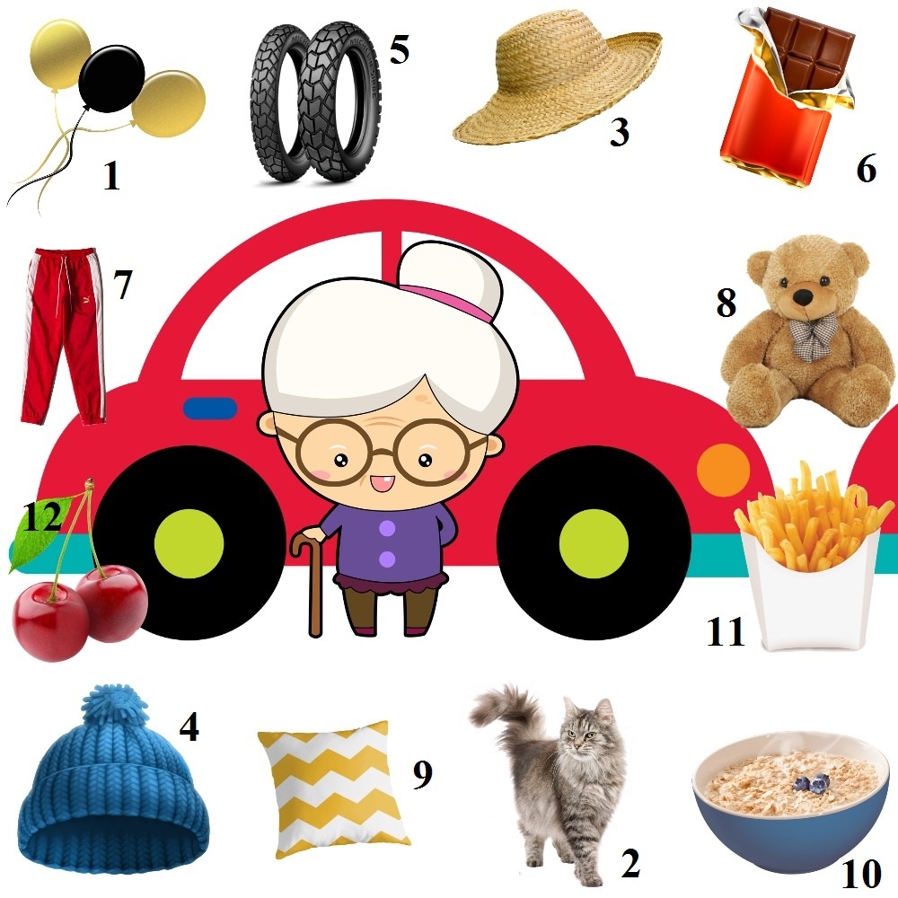 Распечатайте карточки, заламинируйте. Затем фломастером зачеркивайте предметы по порядку и составляйте предложения. У бабушки в машине... У кенгуру в коробке... Что делала Лада? (Лада села на стул/ Лада увидела дятла/ Лада разбила бокал...) Собака Соня съела... ______________________________________________________________________________