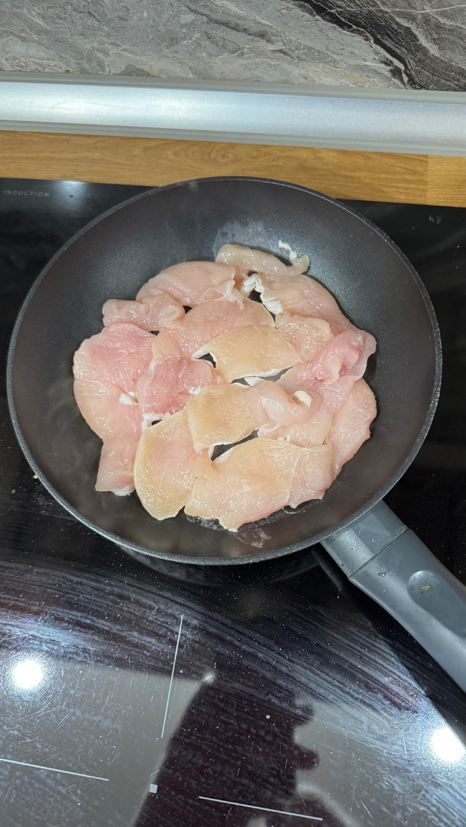 Очень вкусный и быстрый рецепт на 400 Ккал готовится за 7-10 минут при этом в нем: Белка- 55 гр. Углеводов- 25 гр. Жиров всего -8 гр. Когда в рационе "ограниченное" число разрешённых продуктов, хочется чтобы блюда были вкусные и не надоедали. В такие моменты я начинаю экспериментировать. Результатом одного из таких экспериментов стал данный рецепт. Вкусно, быстро и красиво, что как мне кажется тоже не мало важно. получая и эстетическое и гастрономическое удовольствия от еды риск СРЫВА гораздо ниже. И так приступим: 200 гр. куриной грудки нарезаем слайсами и обжариваем на сковородке (готовим на высокой температуре). Я выкладываю курицу в один слой по всей поверхности сковородки. Обжариваю буквально минуту две ( в зависимости от толщины мяса) и переворачиваю. При большой температуре мясо запечатается и останется сочным. Обжарив вторую сторону так же 1-2 минуты добавляем болгарский перец и шпинат. Постоянно перемешиваем. Я рекомендую зеленый перец. Так как он у меня закончился, я испо