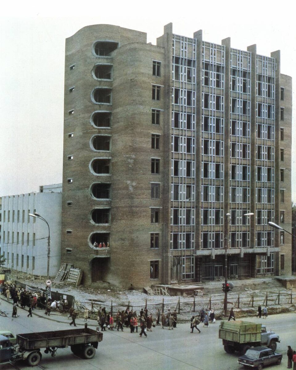 Свердловск. Здание вычислительного центра в процессе строительства Фото 1979 год. Улица Щорса, 86. Архитектор А. Асташкин. В 1970-е гг. после Хрущева понятие «типовой проект» надежно закрепилось в сознании чиновников, а все потому, что процесс согласования индивидуального проекта был либо невозможен, либо жесток и беспощаден для всех инстанций, и реакция на такие проекты была резко отрицательной. Именно поэтому хрущевская эпоха отличалась серостью и убогостью не только жилых, но и административных зданий. Асташкин, отличавшийся особым фанатизмом в отношении архитектуры, оформлял все свои нешаблонные, модернистские, эстетически привлекательные здания под «типовой проект», доказывая чиновникам, что в них нет никаких индивидуальных решений. Один из немногих архитекторов, который шел в ногу со временем. #Екатеринбург #Свердловск #СтарыйЕкатеринбург #СтарыеФотоЕкатеринбург #ЕКБ Мы ценим ваши реакции 👍, а Ваши комментарии вызывают неописуемое восхищение.👍 @oldfotoekb 👈 подпишитесь н