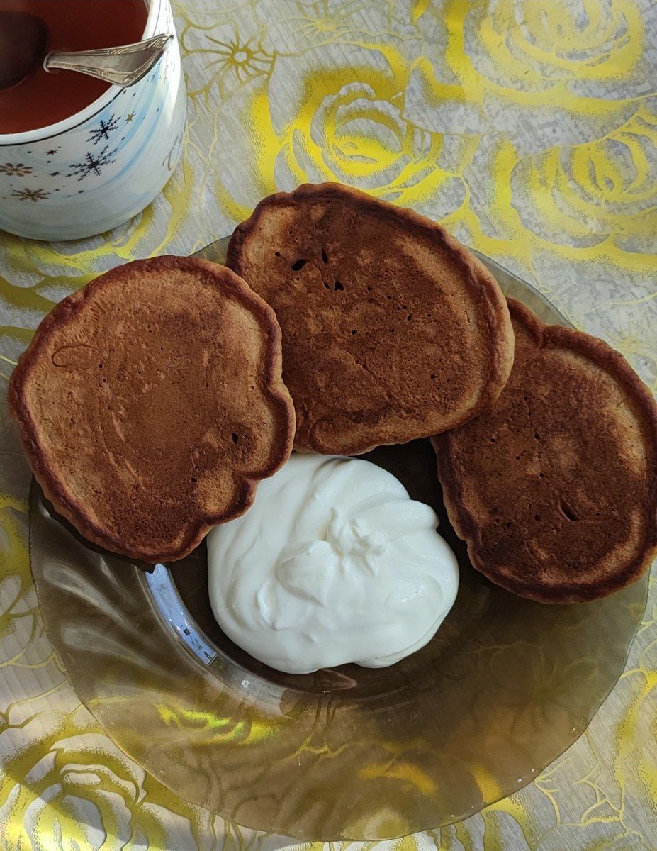 В нашей семье "банановое разделение" 😂😂😂. Я люблю чуть недозрелые бананы, а муж наоборот, перезрелые. Остальной состав семьи, слава богу, всеядный) Поэтому покупаем либо сразу два вида, либо кто-то в пролете. Но все равно, несколько штук остаются никому не нужными)) Вот и в этот раз несколько штук осталось . А так как я ръяная сторонница "сохранить и приумножить", пришлось сотворить такой рецепт. Итак, состав : 2 банана 1 стакан кефира 1 яйцо 2/3 стакана любого варенья 0,5ч.л соды Муки примерно 1,5стакана 3ст.л растительного масла Приготовление : Бананы размять вилкой, до идеального состояния можно не стараться, ничего страшного если в оладушке попадется небольшой кусочек банана. Добавить кефир, яйцо, варенье и соду. Хорошо перемешать. Варенье лучше брать наподобие джема. Муки в составе примерное количество, так как вес некоторых ингредиентов определить сложно, например яйцо и банан. Муки добавить такое количество, чтоб получилось тягучее тесто по консистенции, как густая сметана.