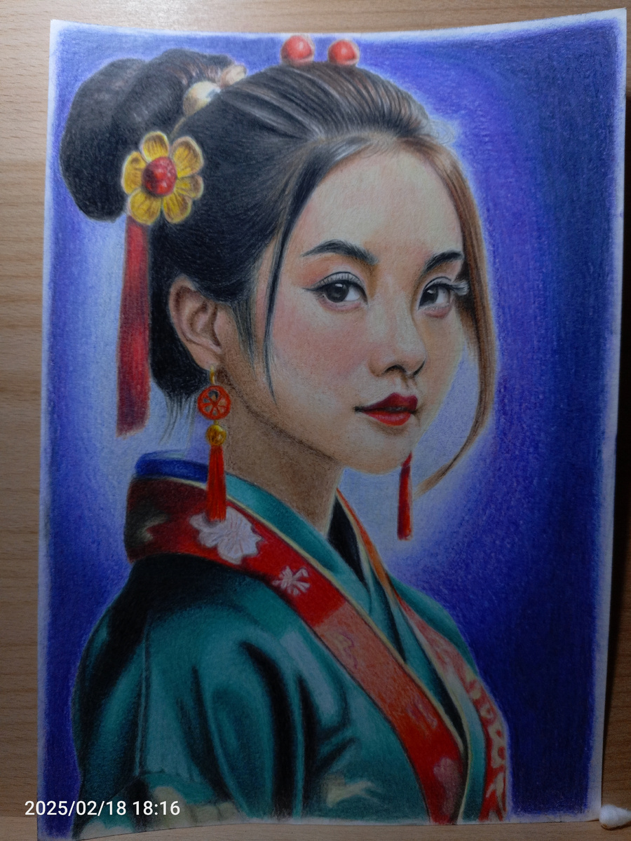 Китаянка Я встретился с ней глазами. Что-то меня в ней сразу зацепило. В тот момент я еще не понял что. НО я остановился, резко. Так останавливаются чтобы не потерять из вида что-то важное, ценное. Ты не успеваешь осознать зачем, но ты уже остановился чтобы зафиксировать момент. Она смотрела на меня внимательно и изучающе. Меня остановил ее взгляд. Затем я стал рассматривать ее атласную яркую одежду. И только потом обратил внимание на прическу и украшения. Она выбивалась из общего информационного фона. Яркая, внимательная и нежная не давала пройти мимо. "Я должен ее нарисовать!" - подумал я в тот момент. "Откуда же ты такая?" - думал я читая информацию. Это была реклама курсов китайского языка. "Ну китайский язык мне не нужен, а вот девушку обязательно нужно нарисовать" - подумал я про себя. Однако вышло так, что мне пришлось на несколько месяцев с ней расстаться. И только потом, пролистывая галерею в телефоне я снова наткнулся на неё. Её взгляд говорил -"Заче