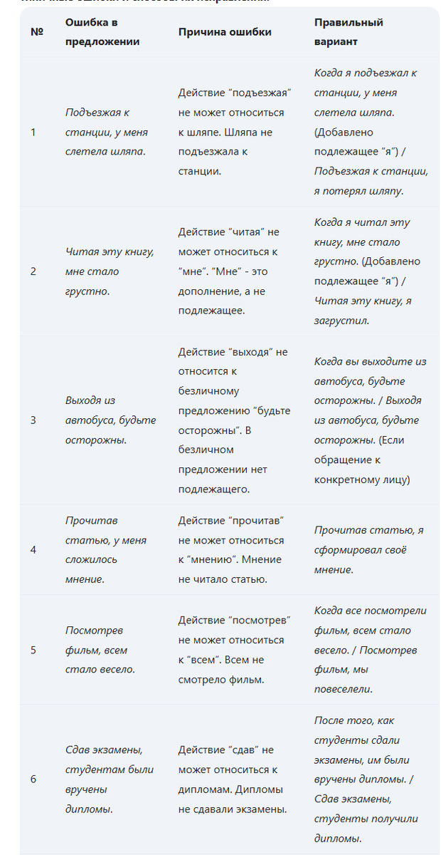 Правило: Действие, выраженное деепричастным оборотом, должно относиться к подлежащему. Подлежащее должно выполнять оба действия: и то, которое выражено сказуемым, и то, которое выражено деепричастным оборотом.