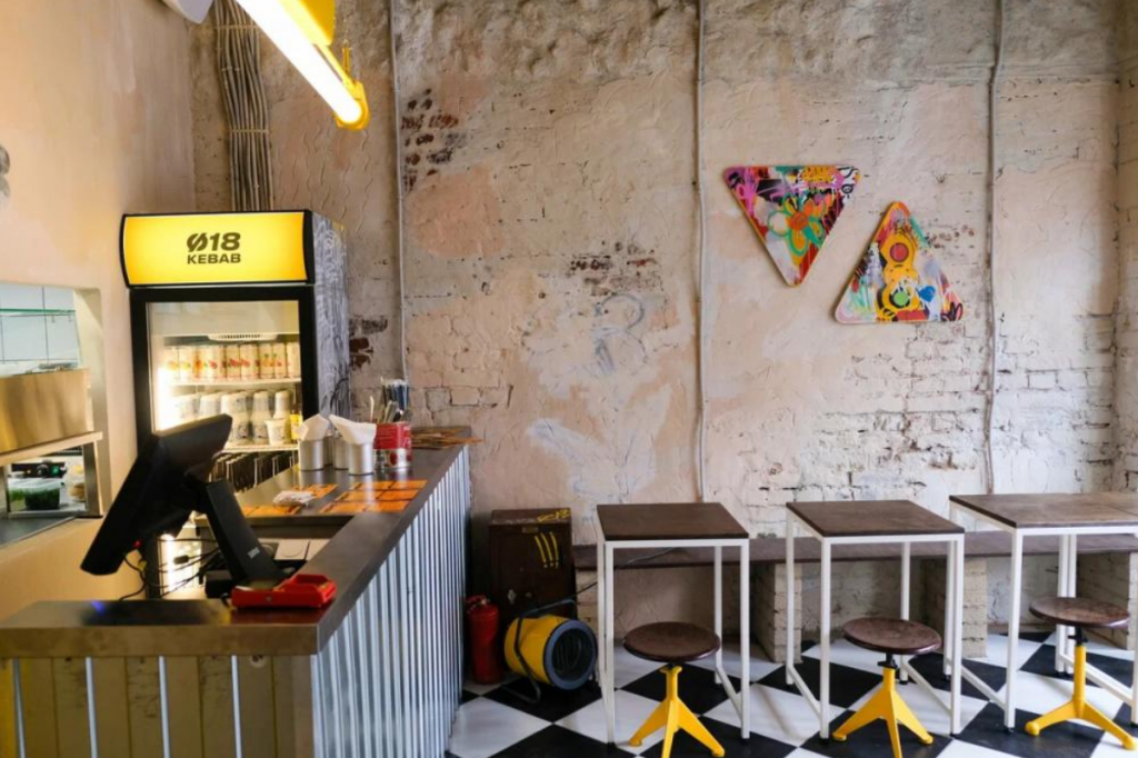 Москва. Новая кебабная в центре города. Другие московские открытия На улице Покровка, 16 в техническом режиме открылся стритфуд-проект Kebab 018 от создателей 036 Kebab и Oliv Pizza. Здесь готовят все ту же популярную уличную еду, но с хлебом другого диаметра — 18 сантиметров вместо 36 (спойлер: менее сытными от этого кебабы не стали). В меню Kebab 018 дюрюмы и кебабы (по 490 и 550 руб.), фри плейт с курицей или фалафелем (350). К любому блюду предлагают добавить соусы и дополнительные ингредиенты (от 100 руб. ): курицу, овощи гриль, сыр халуми, фалафель. В компанию к стритфуду — лаконичный список напитков: айран (250), кола (350), пиво и сидр (по 550). В простой интерьер с кирпичными стенами и черно-белым «шахматным» полом добавили дорожные знаки с ярким граффити. Заведение совсем небольшое, рассчитано на гостей, между делом забежавших перекусить. Столики в «Кебаб 018» не бронируют. О других открытиях Москвы читайте на нашем сайте.
