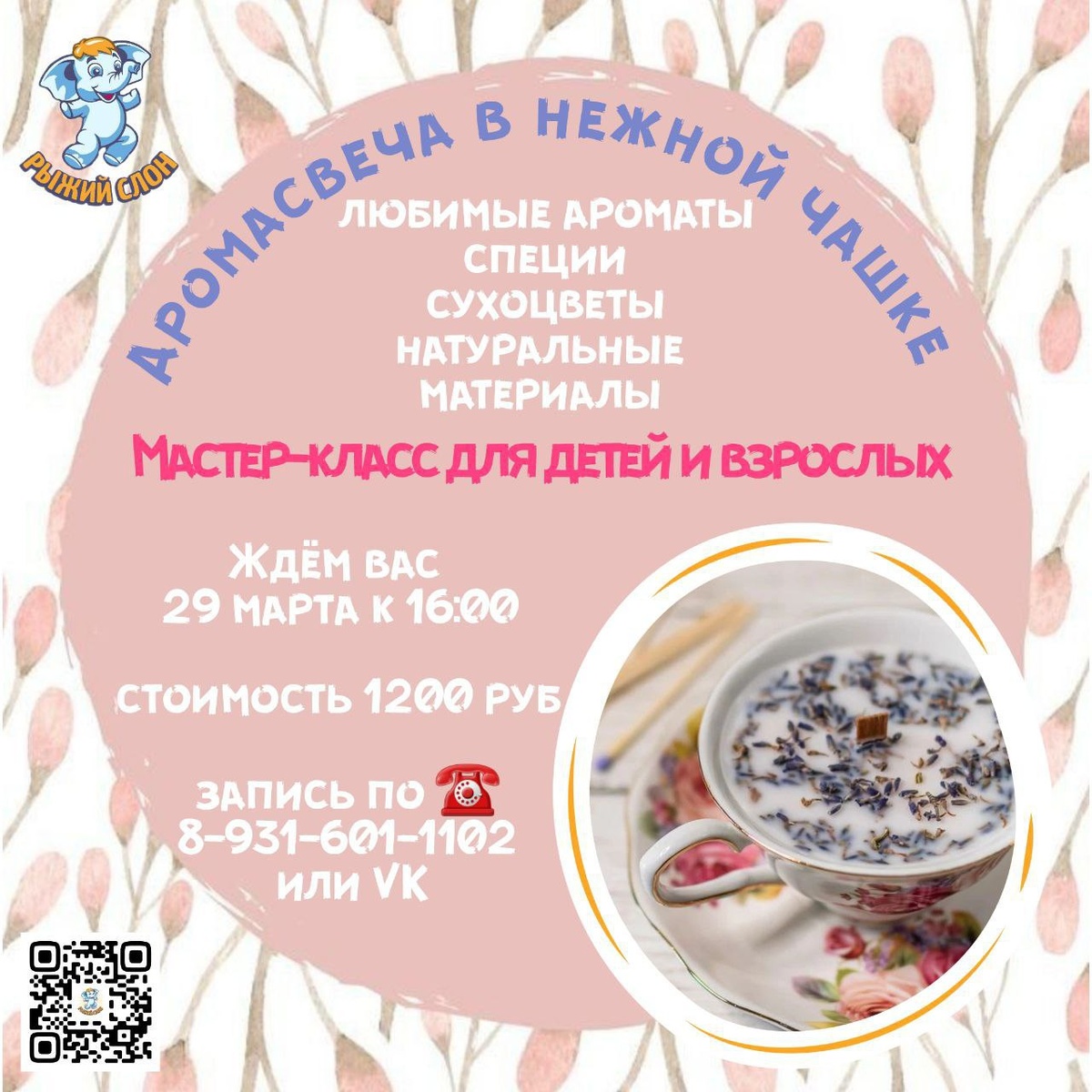 Приглашаем вас на увлекательный мастер-класс «Аромасвеча в нежной чашке своими руками