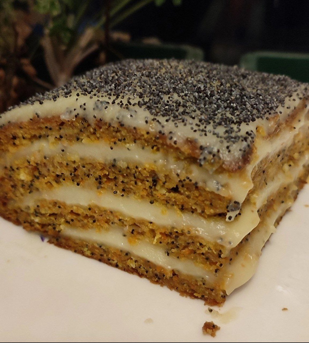 Что делать, если у тебя много моркови и дети хотят чего-то вкусненького?! Правильно, печь торт. Он очень простой и получится у всех. Состав : 1 стакан натёртый на мелкой тёрке моркови 1 яблоко 3 яйца 5 ст.л растительного масла 150гр сахара 1 стакан муки 1ч.л разрыхлителя щепотка соли Ваниль, мак Приготовление : У меня ушло 2среднии моркови. К моркови добавляем яйца, сахар и растительное масло. Хорошо перемешиваем, до однородности. Яблоко натираем на мелкой тёрке, добавляем к смеси вместе с разрыхлителем, ванилью и маком. Все хорошо перемешиваем. Добавляем муку, перемешиваем, чтоб не осталось комочков. Тесто должно получится по густоте, как бисквитное. Дно формы застелить фольгой, смазать бока растительным маслом. Выливаем тесто в форму и выпекаем при температуре 170°С 35минут. Пока основа печется, готовим заварной крем. Состав : 2 яйца 1 стакан сахара 2 стакана молока 3ст.л муки 50гр слив.масла Ваниль В кастрюле с толстым дном смешиваем все ингредиенты в той же последовательности,