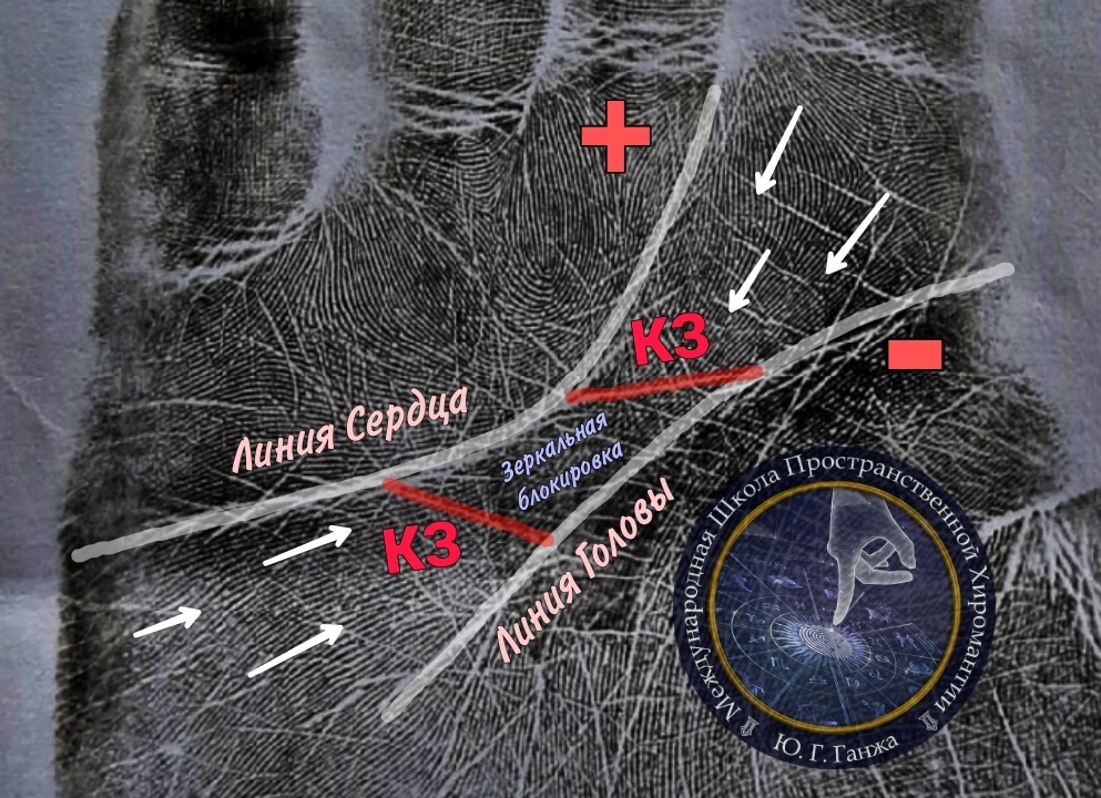 🖍Речь пойдет о коротких замыканиях – линиях, соединяющих между собой линии разного потенциала Сердца и Головы, замыкающих их в направлении, противоположном направлению линии Судьбы. 🖍Такие линии в хиромантии еще называют – линии обиды, разочарования. Когда в нашей жизни происходят серьезные стрессы, затрагивающие психику и больно ранящие душу, возникают короткие замыкания, в такие периоды нам особенно больно и тяжело. До такой степени, что мы можем этим состоянием заблокировать себя от более свободного и легкого существования в будущем, от состояния влюбленности, от впускания в свое сердце новых партнеров или ощущения любви на долгие годы. ☝Такие короткие замыкания в случаях, связанных с отношениями, похожи на кольцо безбрачия. Вас один раз сильно обидели, предали, вы потеряли партнера, испытали мощный стресс, а заблокировали себя надолго. Новые потоки положительных эмоций и чувств - просто не проходят сквозь мощную заслонку или стену внутренних установок психики человека. Э