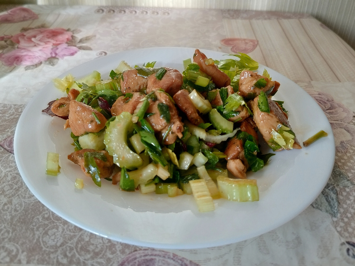 2. Сельдерей разделить на стебельки, помыть и порезать небольшими кусочками.