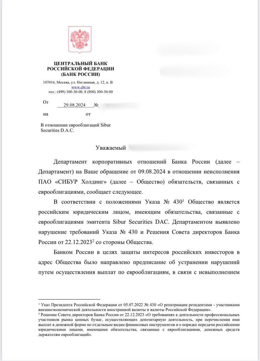 ⚡️«СИБУР» снова удивил держателей своего долга Рассказывает Кирилл Терещенко, руководитель направления по развитию инвестиционных продуктов Wealth IQ Вопрос с выплатами по евробондам «СИБУРа» остается открытым — и обрастает новыми сюжетными поворотами. После долгих задержек с купонными выплатами компания наконец разместила официальное обращение на своем сайте. В нем — предложение выкупить часть бумаг и компенсировать пропущенные купоны. Но условия, мягко говоря, неоднозначные. 🔘Что предлагает «СИБУР» — Владельцы евробондов, купленных до 3 марта 2023 года, могут обратиться в компанию и наконец-то потребовать произвести пропущенные выплаты по купонам и погашению. Срок — до 25 апреля 2025 года. — Тем, кто приобрел бумаги после 3 марта 2023 года, компания предлагает следующее: • выкупить облигации за 50% от номинала; • выплатить ранее пропущенные купоны. Срок подачи заявки тот же, до 25 апреля 2025 года. По сути «СИБУР» предлагает держателям ценных бумаг простить половину долга.