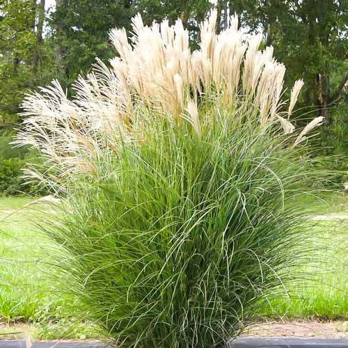 Мискантус (Miscanthus) – трава, принадлежащая к семейству Злаки (Poaceae). Эти травы на природных участках встречаются чаще в Юго-Восточной Азии, немногие – в странах Дальнего Востока, Африки. Растения чрезвычайно декоративны, а благодаря устойчивости к низким температурам приобретают все большую популярность в наших садах. Китайский мискантус, сахароцветный и гигантский. Красивее всего они смотрятся осенью, особенно китайский, который в Японии считается символом конца лета и начала осени. Голд Бар (Gold Bar) – высотой 1–1,2 м, листья зеленые, с поперечными кремово-желтыми полосками, метёлки винно-красные, морозостойкость до –40 °С; Растение имеет длинные прямостоячие стебли (длиной от 70 см до 2,5-3 м). Листья узкие, жесткие, длинные, иногда декоративно окрашены, имеют контрастные полосы. Корневища ползучие, благодаря им трава сама разрастается. Мискантусы предпочитают солнечный участок, в тени они не цветут. Могут расти на сухих участках, но любят обилие влаги, поэтому их можно сажат