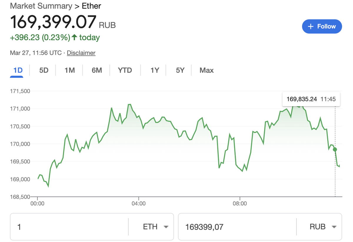Где смотреть актуальную цену ETH/RUB