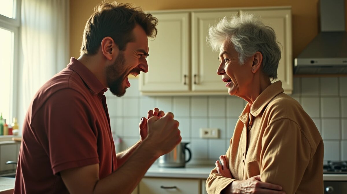 Он смотрел на неё — старую, маленькую, с дрожащими руками — и переживал целую гамму чувств. Злость, жалость, вина — всё смешалось.