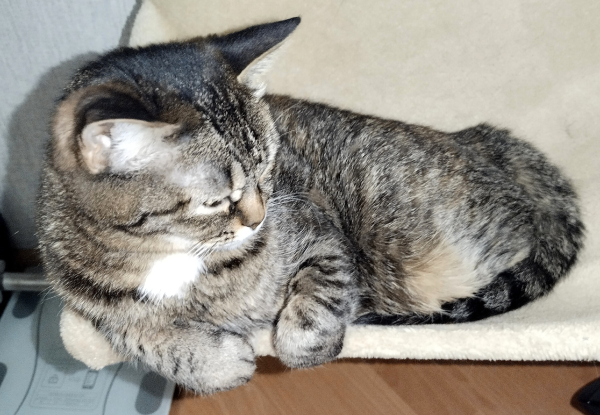Ох-ох-хо, грехи наши тяжкие, как говорила моя бабушка... Видно, я истратила за истекший период жизни длиной в 54 года, 10 месяцев и 30 дней весь отпущенный мне лимит сна. Теперь проспать больше трёх часов подряд проблематично. Если четыре, то это уже прямо достижение! И вот вчера я весь день уставала не покладая рук. И туда сходила, и тут поделала, и тут потрудилась - даже не прилегла ни разу за день. Ну, думаю ночером, щас как упаду, как усну и ка-ак спанану - ух как! Прямо до утра!!! Легла. Ой, и правда, чую, сон мягкой лапой накрывает... Ой, а это лучше! Это пугливая Чуфочка прилегла рядом и тёплым боком мягкой шёрсткой прильнула... Ой, как приятно... Ой, как хор-р... Ш-ш-ш... А-А-А!!! Больно, больно!!! Колется! Оказалось, Чуфочка проснуться изволили. Потянулась кошечка, коготки выпустила - и в моё тело белое впустила!!! И ведь как гневаться будешь, если сама упустила маникюр королевишне навести?! Давно знала, что надо отрезать когти-то!!! Ну что, конечно, мой пугливый сон от моего
