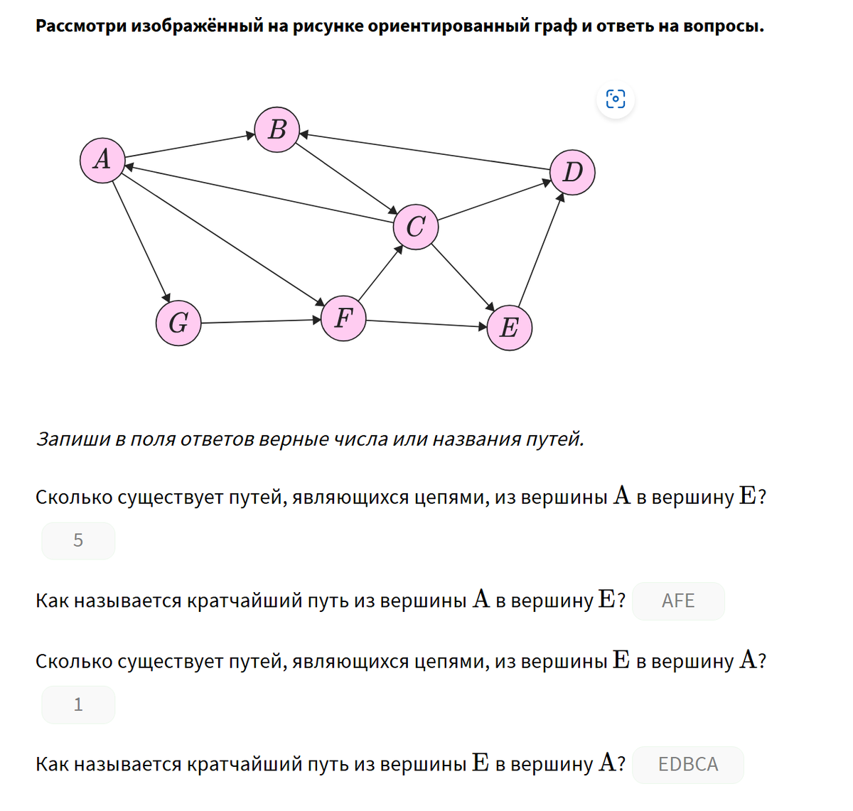 Сколько существует путей, являющихся цепями, из вершины EE в вершину AA ?