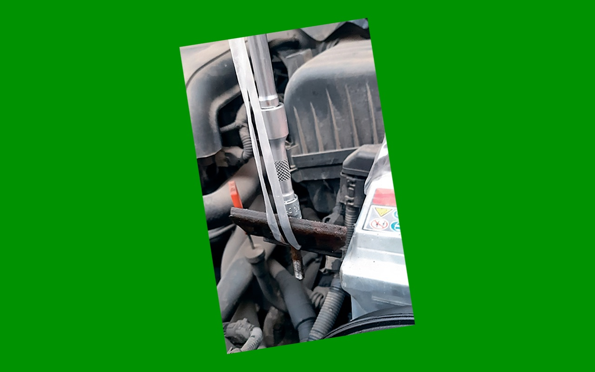 Читатель «За рулем» А. Клюев из Московской области предложил свой способ упростить установку АКБ в автомобиль: «После снятия аккумуляторной батареи во многих машинах сложно в узкой щели закрепить прижимную планку. В «Советах бывалых» были предложения заменить крепежный болт более длинным. Предлагалось также сначала наживить планку, оттянуть ее вверх (магнитом или шнуром), а затем через образовавшийся зазор ставить батарею. Я делаю проще. Опускаю АКБ на место. Вставляю болт в головку с удлинителем, надеваю на него крепежную планку, накидываю веревочную петлю, удерживая ее концы вместе с ручкой ключа. Веревка не позволяет планке и болту выпасть из головки – можно ввести детали через узкий зазор вдоль батареи. Когда болт наживлен на несколько оборотов, вытягиваю веревку. Подобным способом можно воспользоваться и в других случаях, когда надо зафиксировать деталь в узком пространстве с ограниченным доступом».