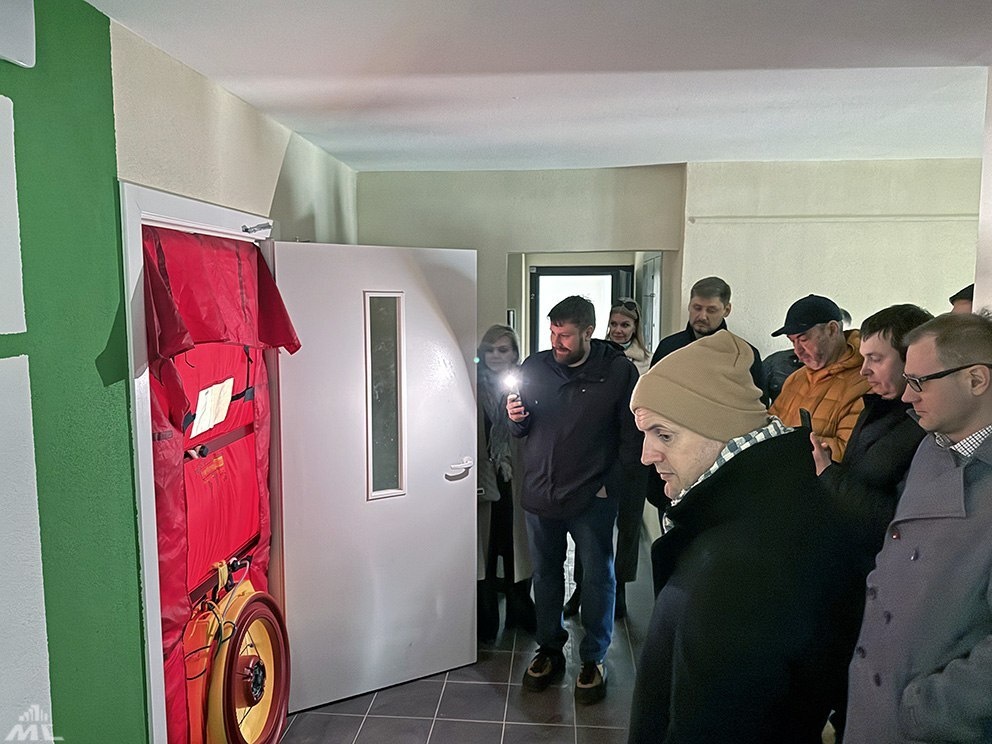 Государственное производственное объединение «Минскстрой» продемонстрировало процесс тестирования новой многоэтажки МАПИДа с помощью необычного устройства — «аэродвери». Её установили в дверном проёме дома № 14 по улице Владимира Оловникова в минском микрорайоне Лошица-7, чтобы проверить качество строительства. Так что же такое «аэродверь»? Если просто, это специальная установка с мощным вентилятором, которую герметично монтируют во входной проём здания. Её задача — проверить дом на воздухопроницаемость, то есть выяснить, нет ли в стенах, окнах или стыках конструкций щелей, через которые может уходить тепло и проникать холодный воздух («мостики холода»). Перед тестом во всём здании перекрывают все штатные вентиляционные отверстия, окна и другие проёмы. Затем включают вентилятор аэродвери, который создаёт разницу давлений между улицей и помещениями внутри. Специальные приборы измеряют, насколько быстро выравнивается это давление. Если давление падает быстро, значит, наружный контур здан