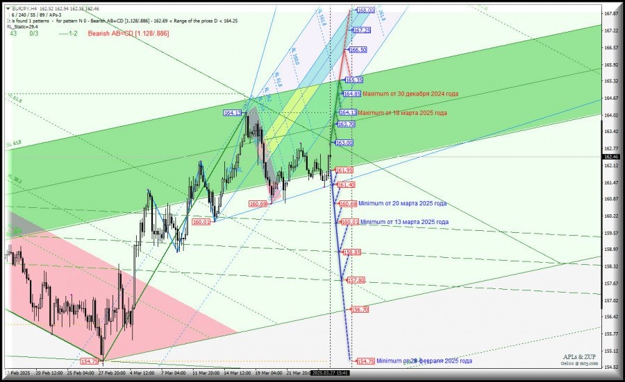 https://basechop.ru/wordpress/?p=35905 Операционный масштаб Minute (таймфрейм h4) EUR/JPY – h4 – обзор вариантов развития движения данного валютного инструмента с 28 марта 2025 г. Предыдущий обзор EUR/JPY (таймфрейм h4) от 20.03.2025 г. 16:29 ___________________ Euro vs Japanese Yen Развитие движения EUR/JPY-h4 с 28 марта 2025 года будет обусловлено границами зоны равновесия (161.95 – 163.70 – 165.35) вил старшего операционного масштаба Minute-h4 и продолжится в соответствии с отработкой и направлением пробоя диапазона: – уровень сопротивления 163.00 на линии реакции RL100.0 Ьштгеу-р4ж – уровень поддержки 161.95 на нижней границе ISL38.2 вил старшего операционного масштаба Minute-h4. Восходящее движение. При пробое линии реакции RL100.0 Minute-h4 – уровень сопротивления 163.00 – движение этого кросс инструмента станет иметь восходящий характер и может иметь продолжение к целям: – срединная линия Median Line Minute-h4 (163.70); – maximum 164.13 от 18 марта 2025 года на началь