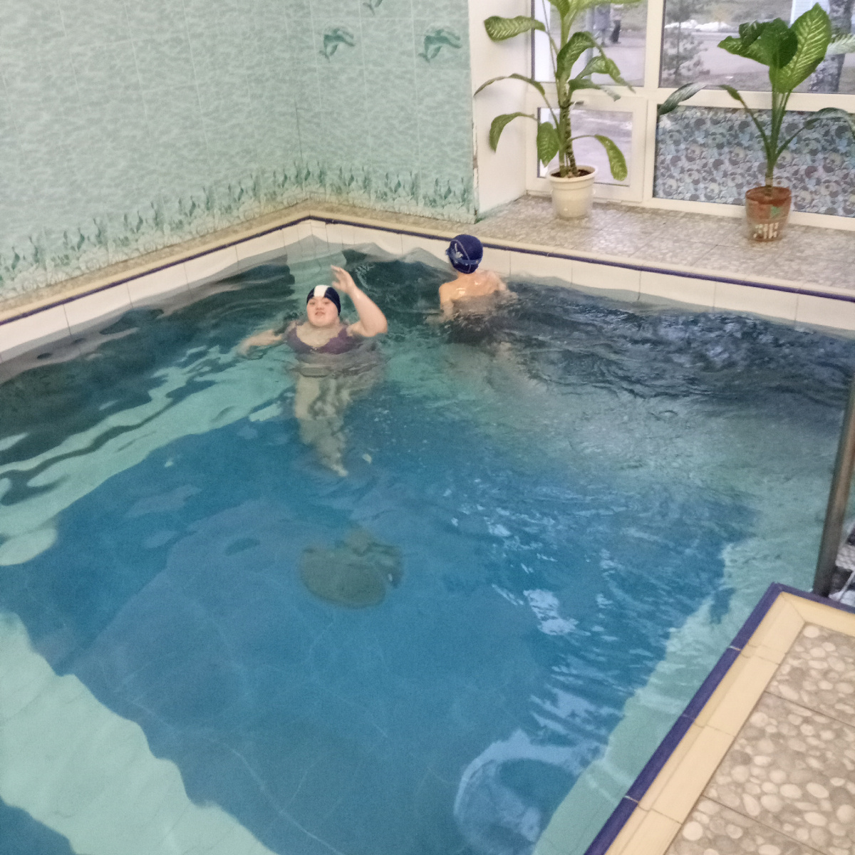 О том что плавание — одно из самых универсальных видов физической активности, особенно для детей с ограниченными возможностями здоровья (ОВЗ) всем уже давно известно. Вода оказывает мягкое воздействие на тело, снимая нагрузку с суставов и мышц, помогая улучшить координацию движений и развивать выносливость. Кроме того водные процедуры снимают стресс, успокаивают нервную систему и помогают ребенку расслабиться. А моим сейчас именно это и нужно. И да, действительно, после бассейна оба пару дней более менее спокойные. На прошлой неделе наш заплыв был не очень удачным. В бассейне чем то ужасно пахло и вода была, мягко говоря, холодная, брррр. И кроме нас было ещё пять человек, а так как бассейн совсем маленький то соответственно было не особо комфортно Вчера, когда мы пришли, я первым делом подошла на ресепшен уточнить как обстоят дела с запахами и какая температура. Меня заверили что вода теплая и воду меняли в начале недели. И вправду Воду поменяли, да так что до самых краёв! Я обычно с