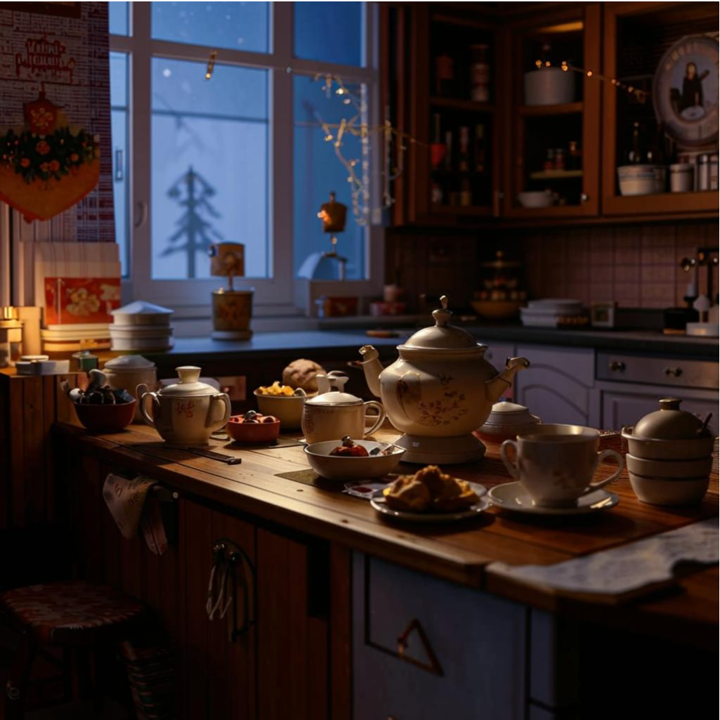 Домовые всегда ставили себе стол отдельно. Поближе к печи. Этот раз не был исключением.