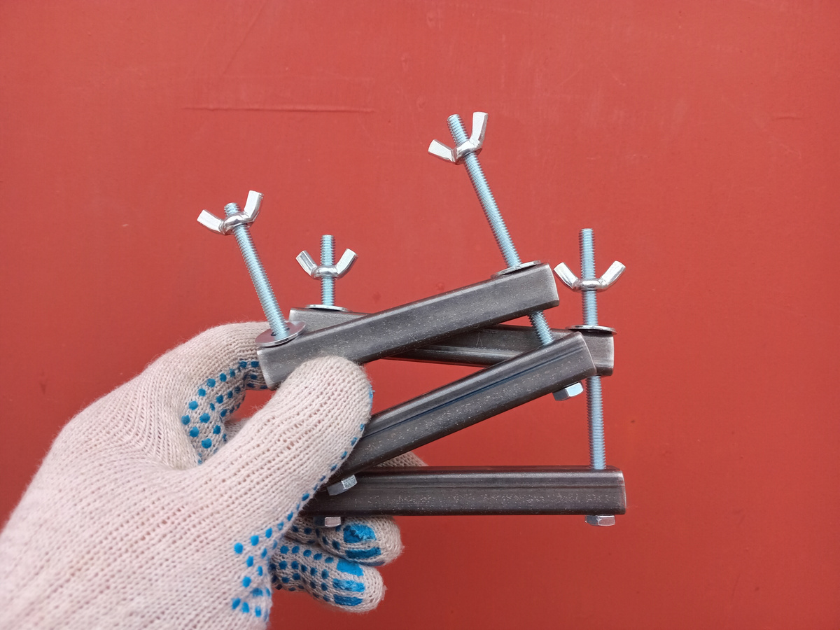 Работы на системе охлаждения удобно проводить с помощью шланговых зажимов, во избежание ненужной утечки антифриза. Шланговый зажим - конструкция очень простая, и каждый автомеханик-любитель делает их себе сам, по месту, из всякого говна. Описанные зажимы ничем особенно сложным и необычным не отличаются, но показали себя, как очень удобные в работе. Делаются они из профильной трубы 15х15 (или иного сечения). Особеность их в том, что для зажима шланга не нужен ключ, а также не нужен и вспомогательный ключ, чтобы удерживать головку болта. Болты М6 (100 мм длиной) зафиксированы в отрезках профильной трубы гайками и не прокручиваются при затяжке: В подвижной планке нужно просверлить отверстия 8 мм (несмотря на использование болтов М6) - если просверлить отверстия М6, то придется очень равномерно затягивать барашки, буквально каждый по 2-3 оборота, и чередовать раз за разом. Если этого не делать, то планку будет перекашивать и закусывать. Поэтому отверстия нужны именно М8 - тогда мож