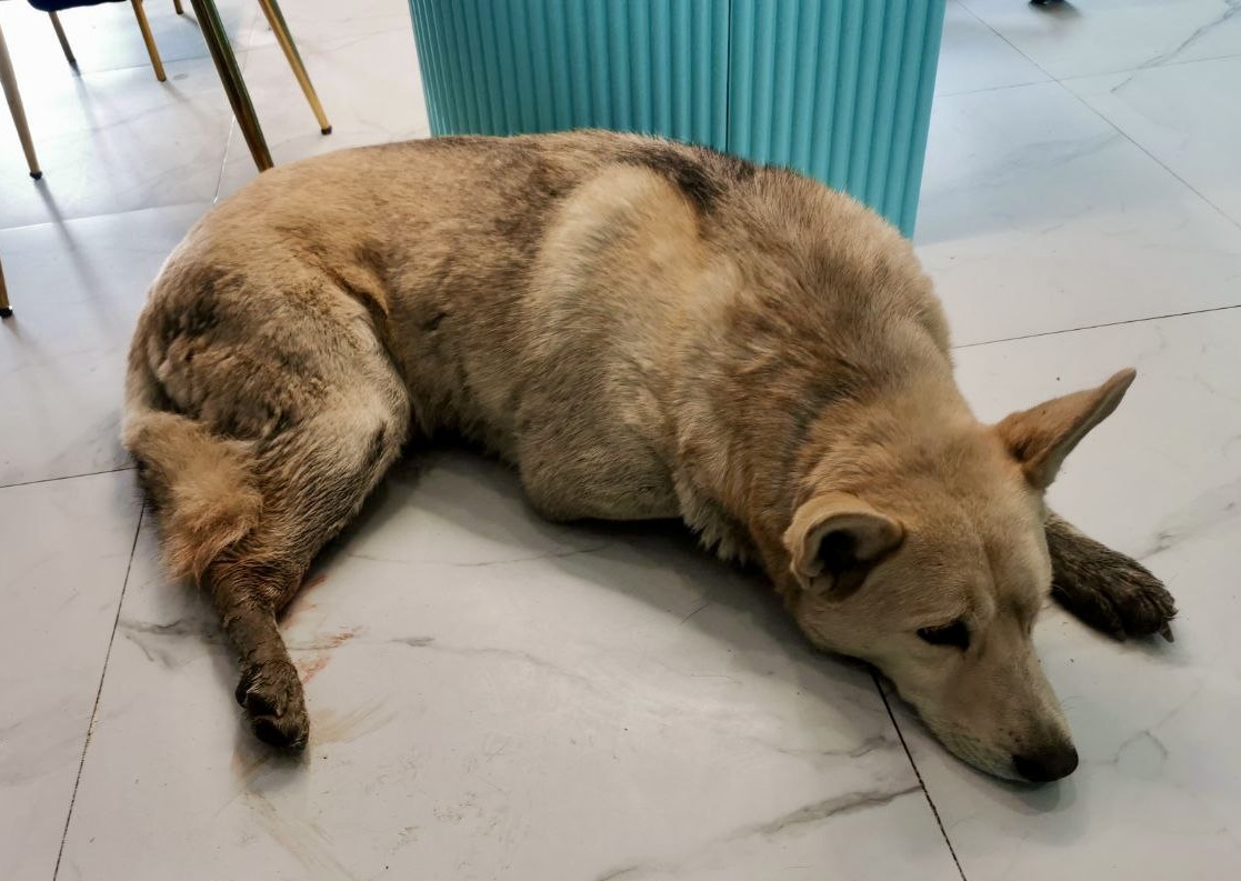 Как Персей хотел жить! Он лежал на склоне придорожной канавы довольно долго, громко плакал и звал на помощь. «Хоть кто-нибудь, откликнитесь! Помогите! Я здесь, я живой, мне больно!» Это выглядело настолько душераздирающе, что не могло не тронуть хоть сколько-нибудь неравнодушного человека. Мы не смогли отказать в помощи бедному псу, хоть и переполнены уже хуже некуда... Но разве можно было оставить его там умирать? Мокрого, переломанного и громко плачущего от страшной боли... Он бы медленно погибал там от голода, переохлаждения, и, как позже выяснилось, пироплазмоза. Правая лапка его безжизненно повисла, на двух конечностях ужасные раны... Мы не смогли, просто не смогли пройти мимо!