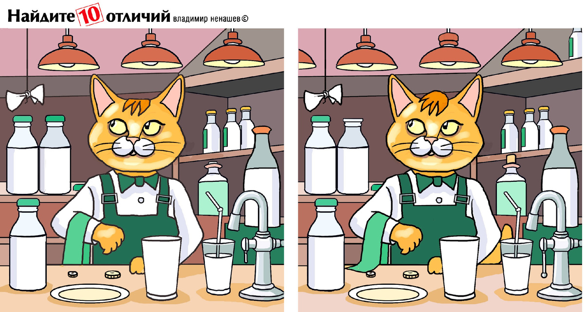 Друзья, у нас сегодня в загадке 10 отличий. Главный герой шутливого сюжета - кот.