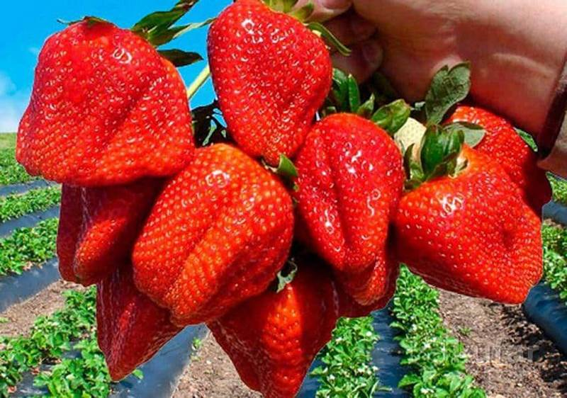 Рекордная масса одной ягодки – 125 г. Среднепоздний сорт, хорошо плодоносящий в открытом грунте и закрытых теплицах. Кусты этой клубники вырастают до полуметра в высоту, раскидываются на 70 см. сладкие сочные трапециевидные ягоды отличаются легкой кислинкой и ананасовым послевкусием. Родина селекции – Голландия. Первые зрелые ягоды появляются в конце июня, плодоносит Гигантелла до конца июля. Кусты хорошо переносят зимний период, любят влагу.