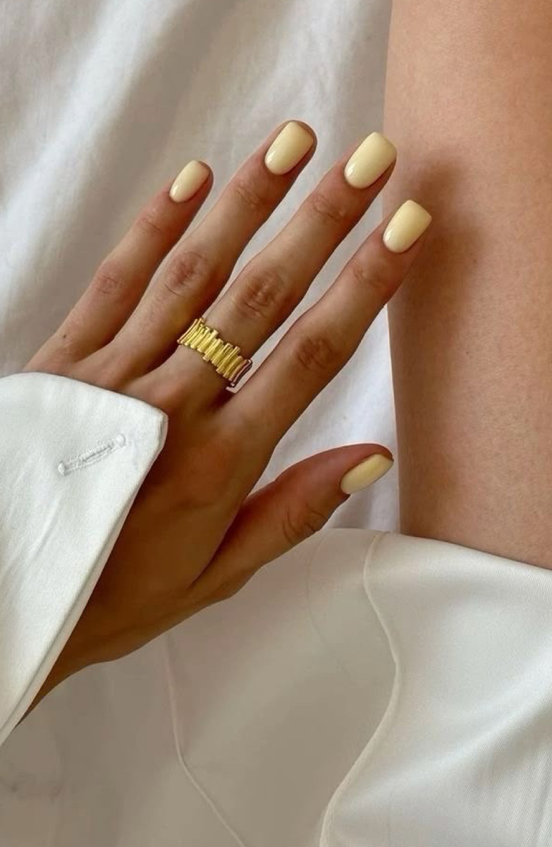 Цвет сливочного масла – трендовый маникюр весны и лета.