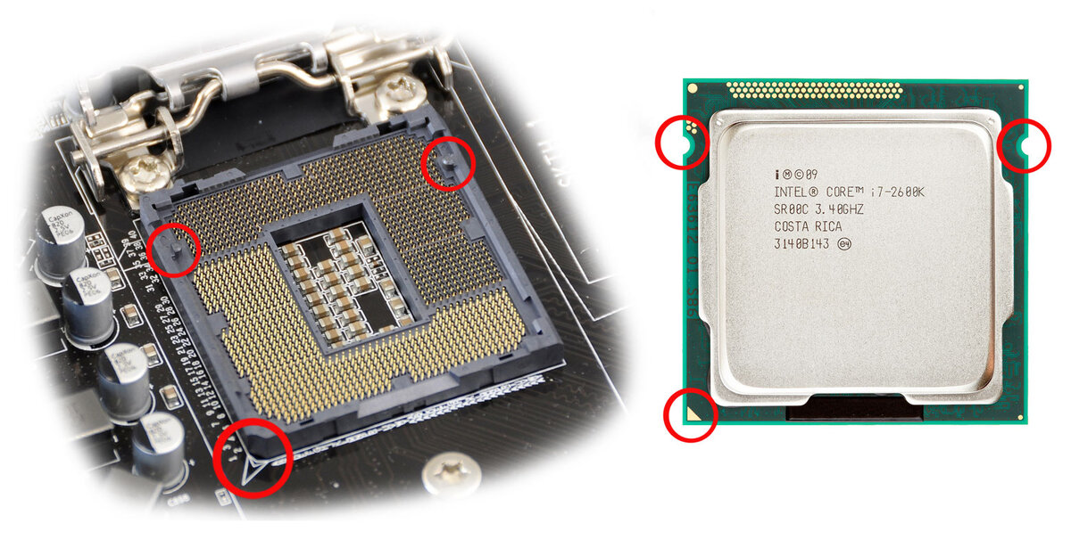 3)Вставляем процессор в сокет мат. платы. Далее нужно совместить треугольник на процессоре с треугольником на разъёме материнской платы и задвинуть защёлку.