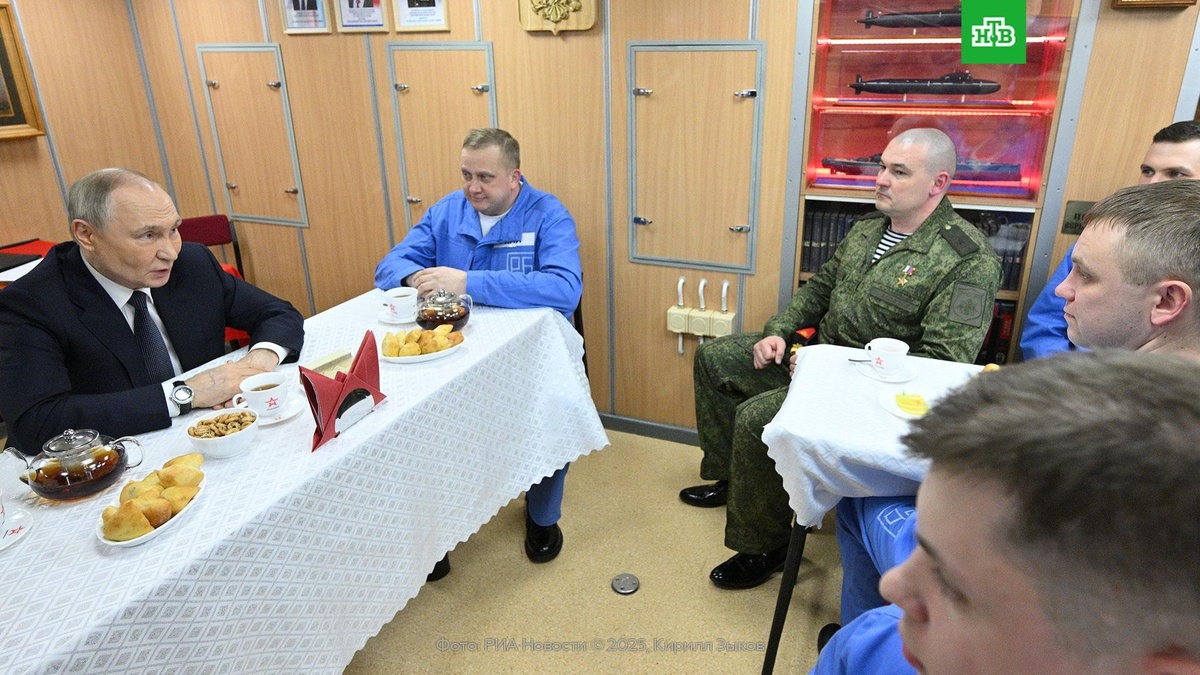 [ Смотреть видео на сайте НТВ ] Владимир Путин встретился с моряками подводного крейсера «Архангельск». Международная практика предполагает возможность введения внешнего управления, что открыло бы путь к легитимным переговорам относительно украинского урегулирования. Об этом президент России рассказал, общаясь с моряками атомной подводной лодки «Архангельск». Владимир Путин, президент РФ: «Такая практика есть, и, в принципе, конечно можно было бы под эгидой ООН с Соединёнными Штатами, с европейскими странами, разумеется, с нашими партнерами и друзьями обсудить возможность введения на Украине временного управления». Владимир Путин напомнил о прецедентах внешнего управления под эгидой ООН в частях бывшей Югославии, Восточном Тиморе, Новой Гвинее. И пояснил, для чего стоит обсудить возможность введения такого временного управления на Украине. Владимир Путин: «Для того чтобы провести там демократические выборы, для того чтобы привести к власти дееспособное и пользующееся доверием народа пр