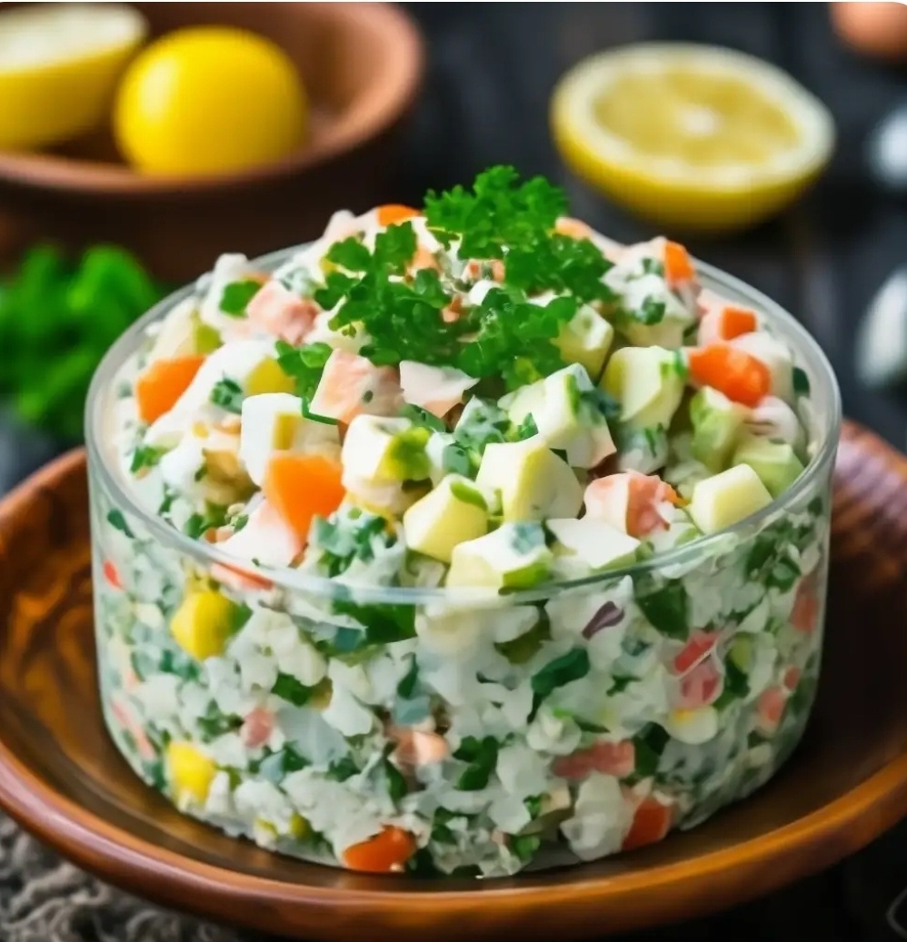 Рецепт салата "Оливье" Ингредиенты: - Картофель - 2 шт. - Морковь - 1 шт. - Яйца - 3 шт. - Огурцы соленые - 2-3 шт. - Горошек консервированный - 1 банка - Лук зеленый - по вкусу - Майонез - по вкусу (по желанию) Приготовление: 1. Картофель и морковь отварите в подсоленной воде до готовности, остудите и очистите. 2. Яйца отварите вкрутую, остудите, очистите и нарежьте кубиками. 3. Огурцы нарежьте кубиками или соломкой. 4. Зеленый лук мелко нарежьте. 5. С горошка слейте жидкость и добавьте к овощам. 6. Все ингредиенты смешайте, добавьте майонез по вкусу и аккуратно перемешайте. 7. Салат "Оливье" готов к подаче на стол. Приятного аппетита!
