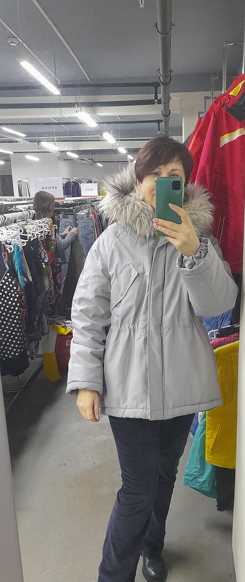 А вот тут как раз-таки подобная тоненькая ветровка! Размер большой, примерила ради интереса.