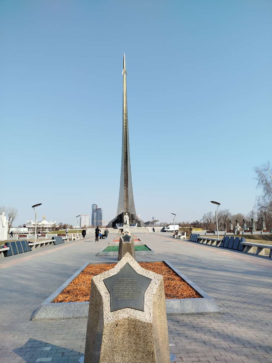 Позавтракав, мы пошли погулять в районе ВДНХ. Впервые прошли через аллею Космонавтов - красивые дорожки, много памятников космонавтам, даже есть своя Солнечная система! И, конечно, все дорожки ведут к монументу покорителям космоса.