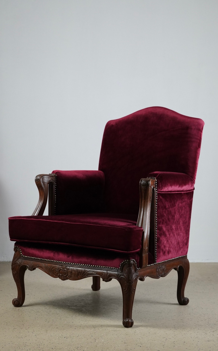 Пара кресел после обновления с новыми подушками. На подушках с бурлетом добавили повторяющийся со спинкой кантик. Корпус затонирован и покрыт маслом в три слоя. На низ и подлокотники установили декоративный молдинг. Как вам такое решение? Подписывайтесь на наш Телеграм.