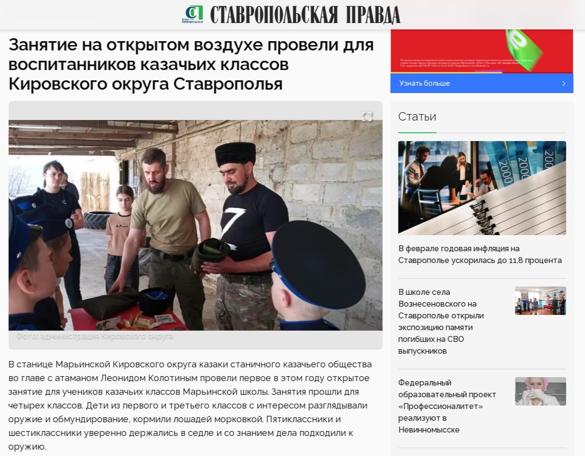 Занятие на открытом воздухе провели для воспитанников казачьих классов Кировского округа Ставрополья