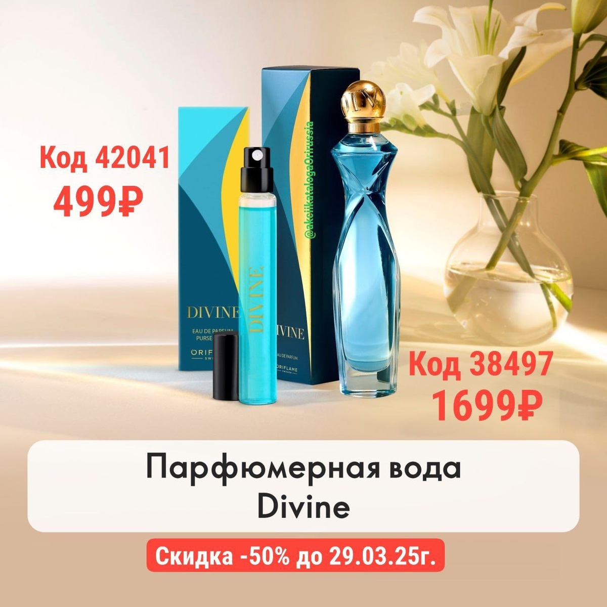 💐 Быть дивой – это не только про внешний вид, это про ощущение. С этим ароматом вы всегда будете чувствовать себя великолепно и бесконечно приковывать восхищённые взгляды. 📍Тип Аромата: цветочный, фруктовый, древесный. 🔺Верхние ноты: фиалка, бамбук, водяной гиацинт. 🔹Ноты сердца: букет лилии и фрезии, роза, жасмин. 🔻Базовые ноты: слива, сандал, белый мускус. Высокая концентрация аромата Автор аромата: Жан Жак. Букет лилии и фрезии – основные ноты. Они распускается в самом сердце аромата, окутывая аурой женственности. Гармония сладких, пудровых и пряных нот добавит шика твоему образу. ❗️ Акция до 29.03. Скидка -50% 💰 Цена:1699 ₽ (вместо 3500 ₽)! 👉🏻Код продукта: 38497 Объём: 50 мл. 💰 Цена: 499 ₽ (вместо 1030 ₽)! 👉🏻Код продукта: 42041 Объём: 8 мл. Ссылка на регистрацию для заказа 👇