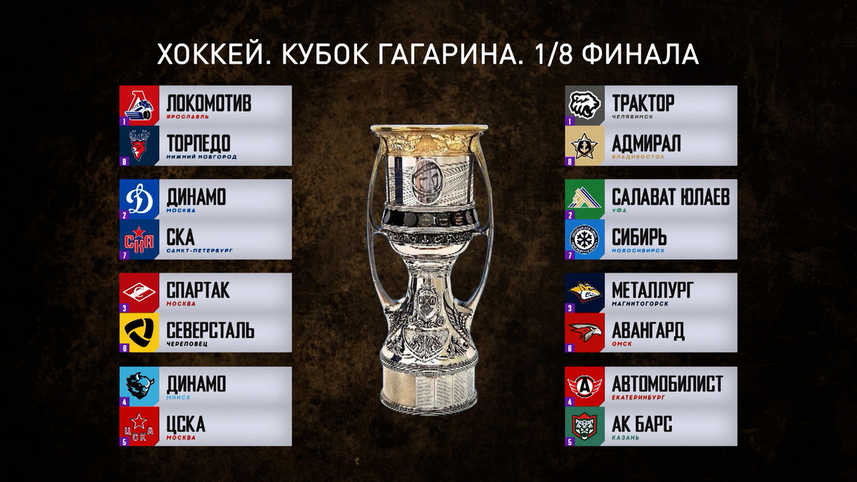 Первый раунд 1/8 финала Кубка Гагарина завершился. Вторые четыре пары так же порадовали нас отличным хоккеем. Краткий обзор матчей в этой статье. В Уфе на стадионе «Уфа-Арена» прошёл 1-ый матч серии 1/8 финала Кубка Гагарина, в котором местный «Салават Юлаев» принимал на своём льду новосибирскую «Сибирь». Встреча закончилась победой хозяев со счёт 7:0. На 17-й минуте 1-го периода Алексей Василевский открыл счёт во встрече. На 8-ой минуте 2-го периода Артём Горшков удвоил преимущество хозяев. На 17-й минуте 1-го Александр Хмелевски сделал счёт 3:0. На 19-й минуте 1-го периода Шелдон Ремпал забросил 4-ую шайбу в ворота новосибирцев. На 13-й минуте 3-го периода Нэйтан Тодд забросил 5-ую шайбу хозяев во встрече. Менее чем через минуту Александр Хмелевски сделал счёт 6:0, оформив дубль. На 16-й минуте периода Артём Набиев установил окончательный счёт во встрече. Счёт в серии 1:0, впереди «Салават Юлаев». В Челябинске на стадионе «Арена-Трактор имени Валерия Белоусова» прошёл 1-ый матч с