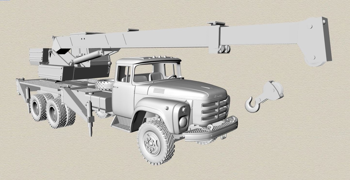 Михаил Пермь анонсировал новинку - модель автокрана КС-375А на базе отечественного грузового автомобиля ЗИЛ-133ГЯ. Модель представлена в виде рендеров и будет производиться в виде набора для самостоятельной сборки из фотополимера методом 3D печати. В 1973 году Дрогобычский завод автомобильных кранов (ДЗАК) из Львовской области УССР представил на ВДНХ СССР новую модель крана КС-2571 с гидроприводом. За высокие производственные и технические успехи предприятие было отмечено специальным дипломом. После демонстрации в Москве новая модель экспонировалась на международных выставках-ярмарках в Болгарии, Венгрии, Югославии, Польше. В 1982 году началось серийное производство автокранов грузоподъёмностью 10 тонн: КС-3575 на шасси ЗИЛ-133Г1 и КС-3575А на шасси ЗИЛ-133ГЯ. Шасси отличались применяемыми двигателями (бензиновый у ЗИЛ-133Г1 и дизельный у ЗИЛ-133ГЯ) и вызванными этим отличиям лобовой облицовки капота. Подробнее об истории ЗИЛ-133 мы рассказывали в этой статье, опубликованной на наше