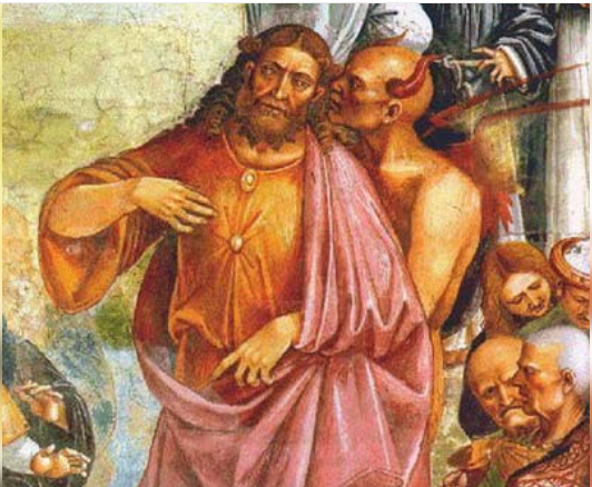 Первое учение, вполне чётко отражает евангельское представление и церковное предание о "чувственной" природе этого страшного претендента на чёрный трон своего сокрытого до времени "отца".